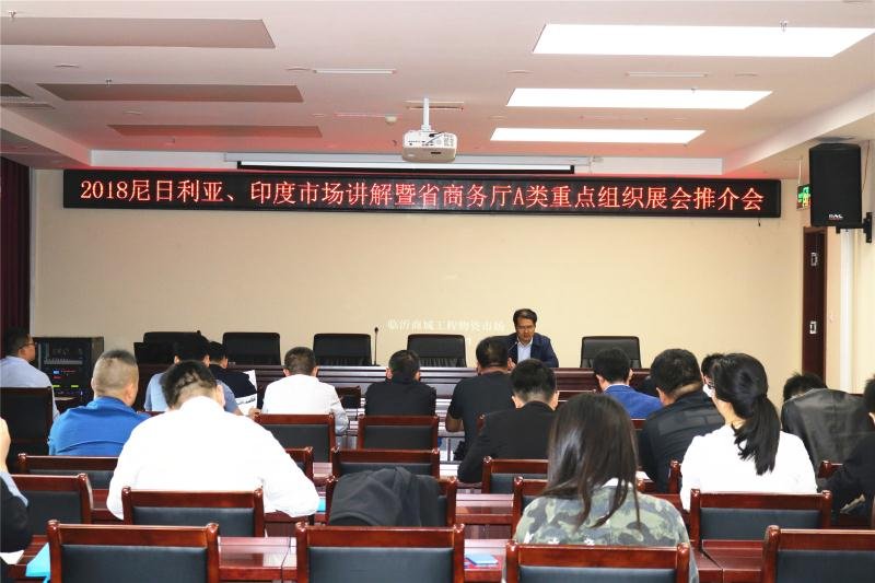 5月11日上午,2018年省商务厅A类重点展会尼日利亚印度专场推介会在临沂商城工程物资市场举行。