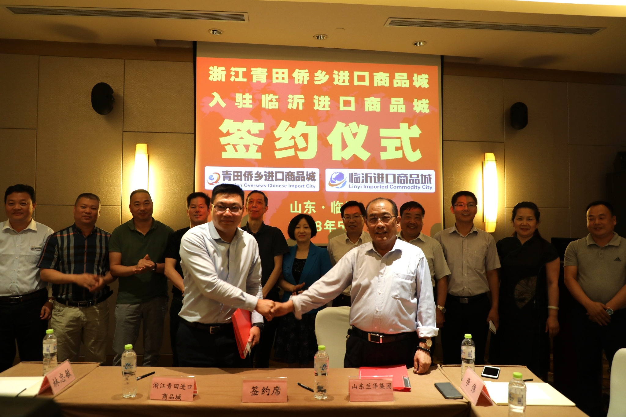 5月24日上午,浙江青田侨乡进口商品城入驻临沂进口商品城签约仪式在临沂市铂尔曼大酒店举行。青田县人大常委会副主任钟秋毫,临沂商城党工委书记仉天青出席签约仪式。